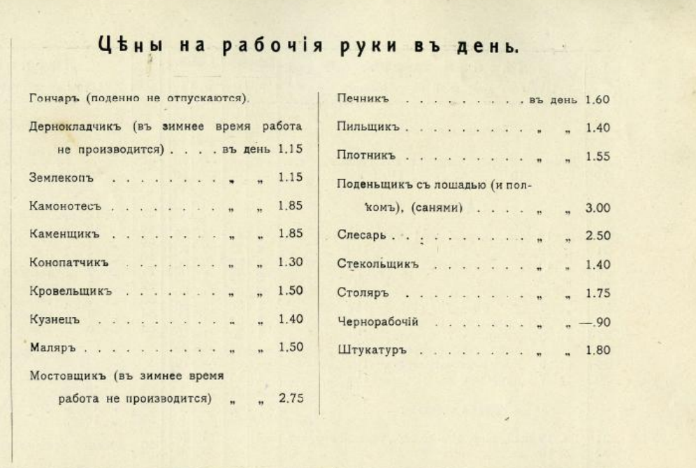 >>61570955 >>61570946 >При средней зарплате 5 рушлей На селе в крестьянских хозяйствах, в городе у посудомойки были такие зарплаты в месяц, да. У всех остальных были выше >>61571532 >зарплата дворника в Российской Империи составляла примерно 18 царских рублей в месяц. Ну дворник тогда немного не так работал как сегодня, у него было больше обязанностей хотя людей он меньше обслуживал, мусора меньше возил это точно.