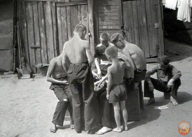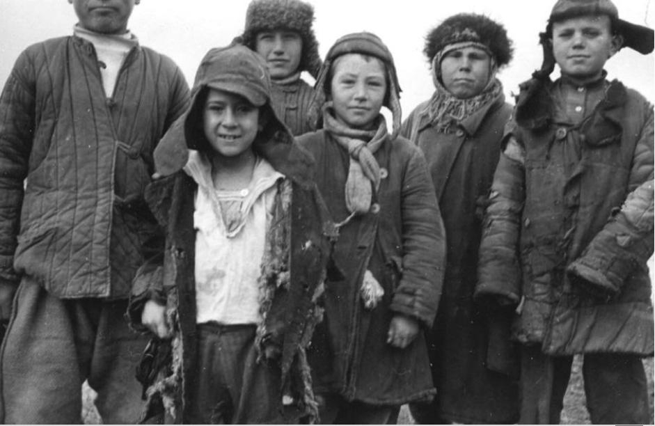 >>61607538 >Первый пик, емнип, беспризорники 20х Ну вот вам небеспризорники 40-х. Видите, какая радость цветёт на румяных лицах? Судя по одежде, эти дети рассекают без обуви ранней весной вовсе не от желания побарефутствовать и пошлёпать по ледяной грязи босыми пятками, а из-за-того, что в счастливой стране Советов нет сапог.