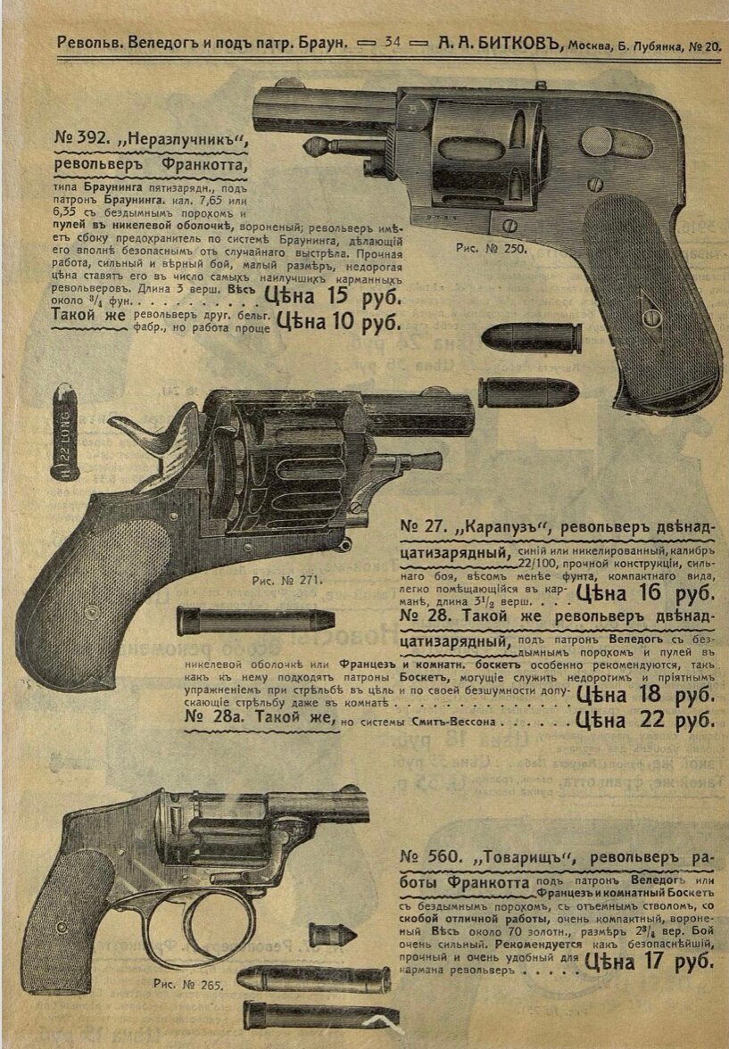 >>61608947 Золотой век пистолетов и револьверов настал в конце 19 века. В конце 19 века самым популярным оружием стал велодог - карманный револьвер, разработанный Шарлем-Франсуа Галаном для защиты велосипедистов от нападения собак. Стрелял велодог мелкокалиберными патронами, иногда патронами с солью или перцем. Убить из него, да и серьезно ранить было сложно, так что его считали прежде всего доступным средством самообороны. Стоил он от 5 рублей