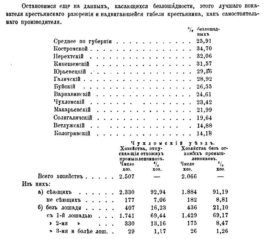 >>61605458 >царская параша была аграрноной дырой с постоянным голодом 80% населения Цифры 8% хозяйств не сеют, 21% хозяйств без лошадей. Мы не знаем сколько дворов было в этих хозяйствах может 20 может 100, может они рыбу на Волге ловили, может торф копали, но факт остаётся фактом. 20% без лошадей это нищие. Остальные 80% это 17к-средний класс >Источник: Труды местных комитетов о нуждах сельскохозяйственной промышленности : 1-58. - Санкт-Петербург : тип. "Нар. польза", 1903-1904. - 58 т.; 26. Костромская губерния. - 1903, стр. 146 - 147