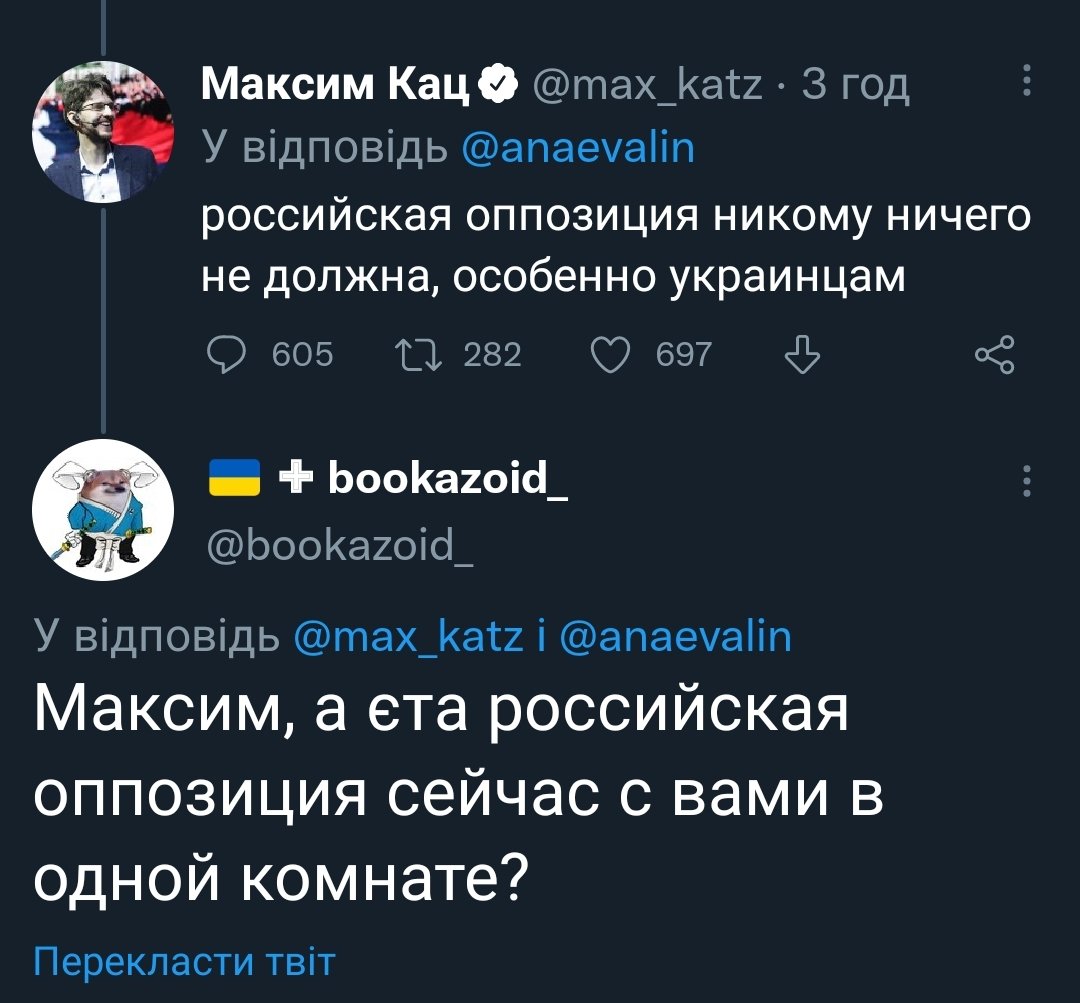 >>61638061 >Про каждого пыниного пидараса Блять, посмотри в глаза правде - он свое состояние во многом сколотил до пыни и ему в принципе ничем не обязан, в отличие от всяких сечиным, патрушевых, миллеров и прочих прихлебаталей, которых пыня поставил на хлебные должности. >>61638079 >А эти воображаемые россияне сейчас с тобой в полной комнате? Нет, но я читал книгу Толстого "Культура русского заговора" и тебе советую. >Кстати относишься ли ты себя к ним или ты ДРУГОЕ? Нет, я буквально стараюсь как можно меньше событий объяснять конспирологией, поскольку посмотрел на черный ящик принятия решений изнутри и знаю, что процент бардака и просто принимаемых по наитию решений просто огромен. >напомни итт чей Крым Украинский, под российской оккупацией >своё отношение, как россиянина, к Роскомнадзору. Крановать было бы неплохо, но и люстрации устроят.