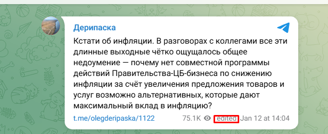 Интересно, почему так. Наверное, уважаемый бизнесмен понял, что был глубоко неправ, наша великая экономика только крепнет с каждым днём, и решил исправить свой нехороший пост. И правильно!