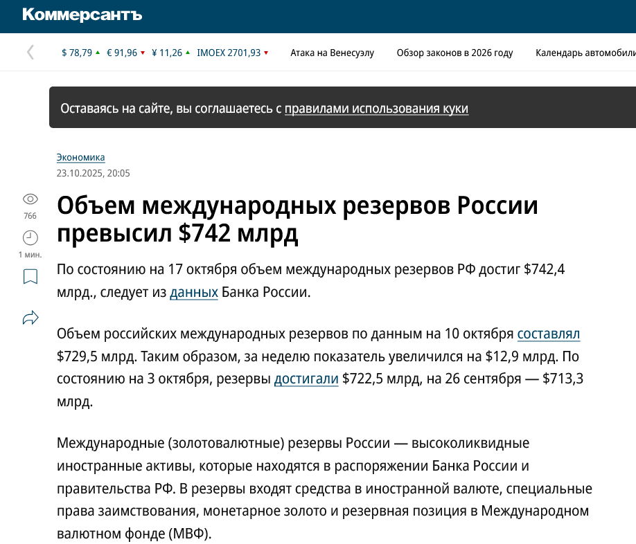 >>61628526 >ликвидная часть >средств в валюте Так они уже давно заменили доллары и евро в резервах на рупии и юани, а они не являются свободноконвертируемыми. То есть Индия с Китаем в любой момент могут выставить нужный им курс или отказаться забирать свои фантики у рашки. Вся экономика РФ сейчас держится на доброй воле "братушек".
