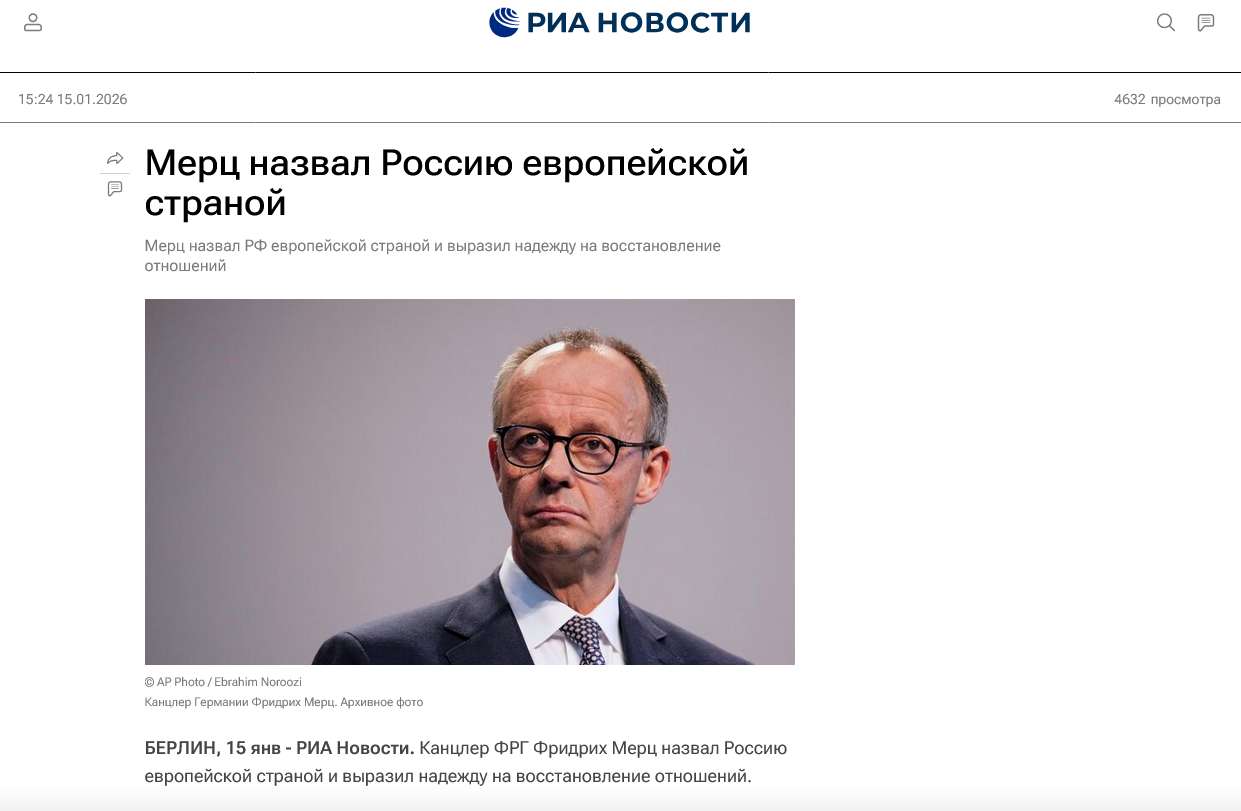 ⚡️«Россия — это европейская страна и с ней нужно восстанавливать отношения», — канцлер Германии Мерц.