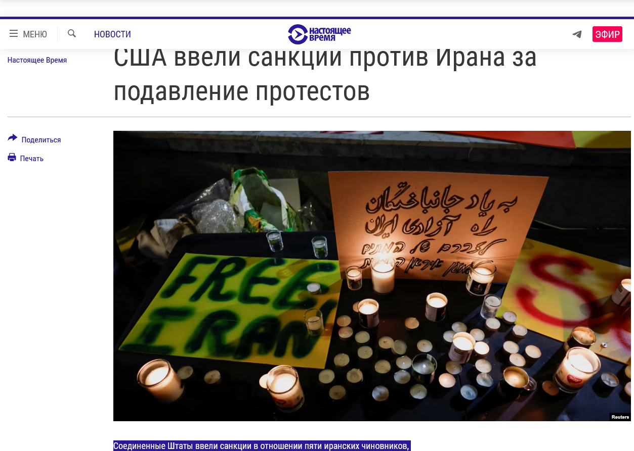 >>61660701 Это не помощь, а хуйня. >Соединенные Штаты ввели санкции в отношении пяти иранских чиновников, обвинив их в причастности к подавлению протестов. Это следует из сообщения Минфина США.