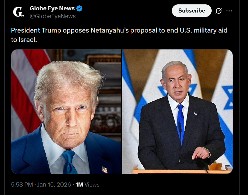 Премьер-министр Израиля Биньямин Нетаньяху в среду поговорил с Трампом и попросил его подождать, чтобы у Израиля было больше времени подготовиться к возможным ответным действиям со стороны Ирана. Израильский источник заявил, что помимо опасений по поводу ответных действий, текущий план США включает удары по объектам сил безопасности в Иране, но Израиль не считает его достаточно сильным или эффективным, чтобы существенно дестабилизировать исламский режим.