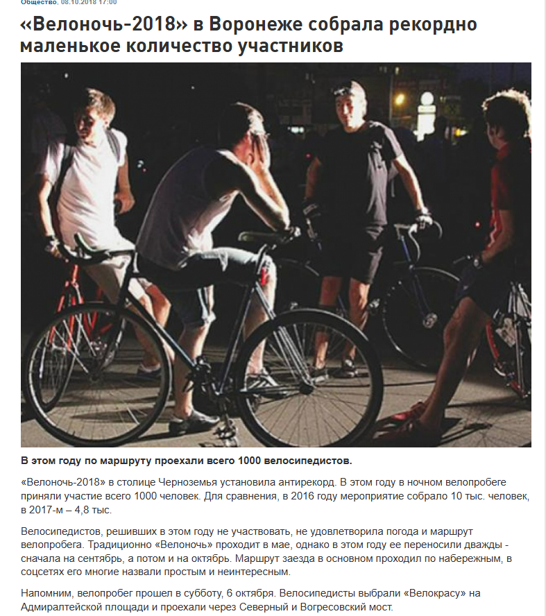 И началось эта хуйня уже много лет назад. Я помню, как появилась традиция устраивать велопробег. Никто это не организовывал. Никто за это никому не платил. Но уборе всех 2-3 года в это влезла гебня и мэрия. Поставила своих кураторов, начала на этом пилить бюджет, кому-то продала рекламу.