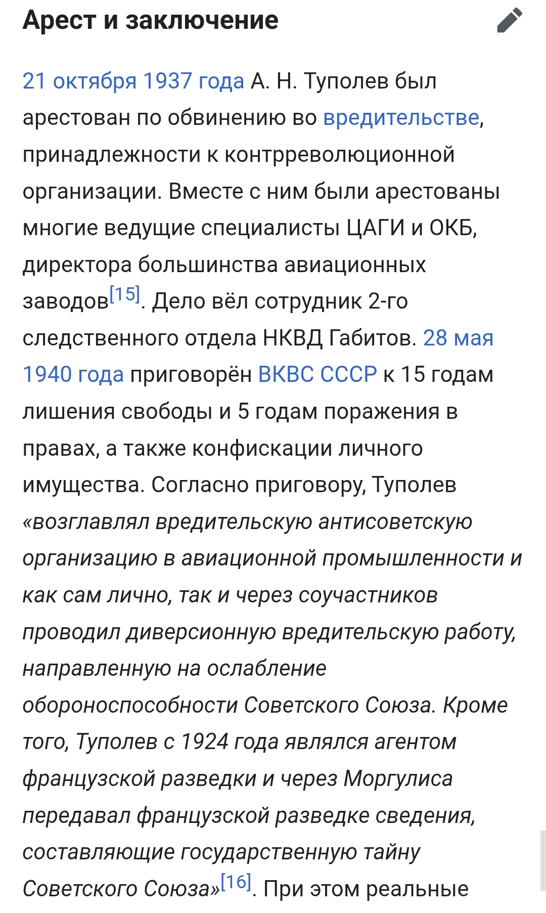 >>61666610 > Тот же туполев за дело сидел, он это сам признавал уже глубоко после всех событий. Как и королев. Только подпынявый раб мог искренне поверить в пиздеж тогдашних слабовичков, которые выбивали эти признания под пытками.