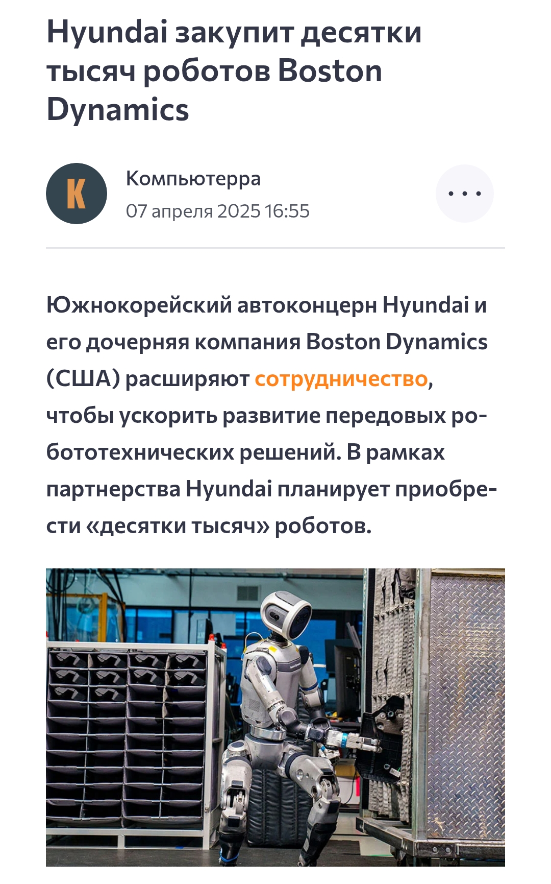 до покупкой хюндаем эти роботы нихуя не делали и никуда не внедрились в 2024 году нихуя не внедрили, только "тестировали в малом масштабе" в 2025 году нихуя не внедрили, аналогично только тестировали в том же масштабе