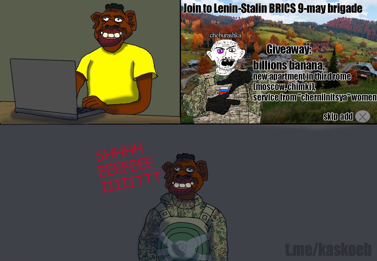 Это было бы смешно если не было бы правдой. Лахта (да, та самая, которой платят деньги за то, что она творит ЗЛО) рекрутирует нигеров с щитхолов воевать за пидорашку.