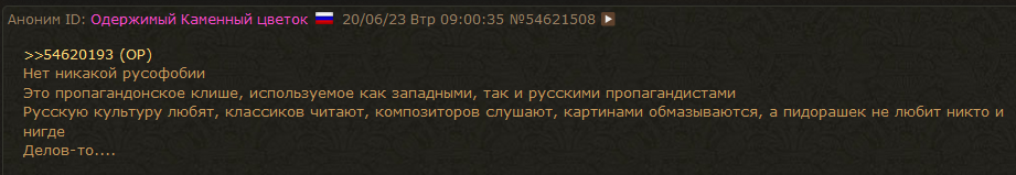 >>61723963 (OP) Моя русофобия существенно увеличивается, когда я читаю, что пишут соотечественники на форчане в разделе /pol/, куда они мало того что приходят писать на рунглийском, так ещё пробираются через блокировки. Ватная блядота перед западным барином там трясёт ягодицами сильнее, чем бразильская танцовщица на карнавале.