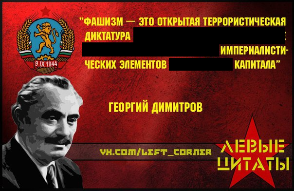 >>61724835 Уберем лишние, громоздкие характеристики Димитрова и посмотрим в суть. Террористическая диктатура империалистических элементов капитала. И именно таковой террористической диктатурой империалистических элементов капитала - был сталинизм. Ведь что это было? Государство, которое отчуждено от своего народа, управляет благами как капиталистический аппарат в виде государства. И полезло в начале Второй Мировой Войны делить Польшу, Европу и так далее, сотрудничая с Третьим Рейхом. А какие дикости творились в СССР - страшно и вспомнить. Права, свободы? На них плевали и вытирали об них ноги. Замученные Совком люди до сих пор ходят среди нас - это жертвы людоедского режима. Об этом кстати предсказывал Ленин - по Ленину последней стадией капиталистического государства является превращение в 100% национализированное государство, но где господствуют иерархия, армейщина, диктатура - все как в СССР. Но Ленин был не прав, как и не прав был весь марксизм-ленинизм, это все были магические присказки. Но с терминами я согласен, фашизм это чудовищно. СССР это чудовищный фашизм, который ради наживы к власти убивал миллионы людей
