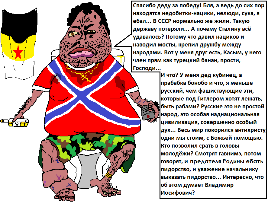 > Лчить нужно причину, а не следствие. Ага, видимо предлагаешь закрыть все границы, волшебным хлыстом заставлять население сверх-плодиться, во всех мелких конфликтах всегда у всех всё отбирать и бомбить по мирняку (он же чужой, его можно). И похуй, что границы полностью закрыть нерентабельно, и похуй что волшебного хлыста нет, и похуй что деньги любят тишину, а не войну. Я же хочу просто, чтобы государство... жестко следило за мусульманами, не взирая на их религию. Я был бы готов даже отменить АГС по религиозным причинам для армии, все равно это не работает. Чтобы ХОТЯ бы мы не жили в страхе, что уже завтра проснемся в неконтролируемом бунте мусульман-радикалов. > Жида и чурку в одну печурку! Против таких оскорблений. Евреи очень умный, самый умный народ на Земле, это гордость Европы. Чрки это грязное оскорбление для людей азиатской расы. Сегодня чрка это таджик, а завтра бурят, алтаец и якyт. Я не против распространения контрмигрантских новостей и настроений, но думаю такие прямые оскорбления лучше было бы запретить.