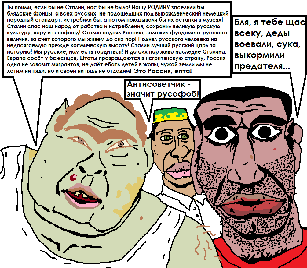 >Русофобия это видимо антисоветчина и антисталинизм, если ты про украинцев говоришь. Или посты троллей в интернетике, хотя сами русские сидят в /po/ и пишут все тоже самое, что и украинцы