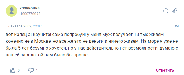 Ну это ты зря. Сейчас понабегут 15-рублёвые "неплакальщики", "начавшие с себя" и объяснят тебе, что нужно раз в месяц менять работу (при каждом повышении цен), если тебя не устраивает твоя з.п. и уровень жизни, учиться@развиваться (видимо вместо сна, т.к. "работы" обычно не оставляют на это никакого времени и сил, а бросить работу и заниматься только этим обычно тоже материальной возможности не имеется), работать вместо сна, выходных, отпусков и больняков, жрать на ходу, а срать на лету....и овердохуя других телодвижений для того, чтобы ......................................................... позволить себе всё то же самое, что и год назад не напрягаясь, а то и меньше, т.к. остальное тебе "не нужно". Ещё расскажут охуительные истории типа "работаю на заводе - зарплата 100500к" или "получал 20к, поднялся до 120к, но работать приходится 25х8 без выходных", "зарплата ниже 100к - это "у хохлов", а у нас даже дворник в ебенях на полставки давно получает 300к/наносек" и т.п. Те из них, кто поленивее - предложат идти "ебать хохлов" за "200к", на которые тебя конечно же "не кинут", даже если выживешь и придёшь оттуда одним куском. А самые ленивые объявят тебя "хохлом", "обрыгой", "либердой", "10-й колонной на USAID", "провокатором" и посоветуют валить.
