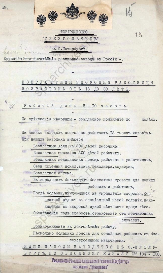 Прямо как сейчас читаешь описание вакансий. Неудивительно, что к октябрю 17 года завод выдал 500 бойцов красной гвардии (т.е. 10% от мужской части рабочих), а из работниц фабрики составили отряд санитарок.