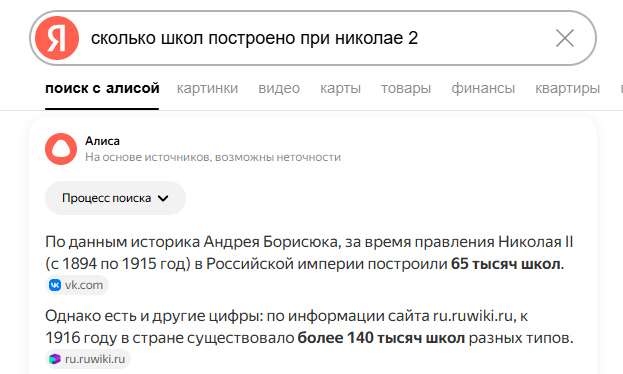 >>61736851 >при николае построили 1000 школ Данные о количестве построенных школ при императоре Николае II значительно превышают указанную цифру. Источники указывают, что в период его правления в Российской империи ежегодно открывалось около 10 000 начальных школ и до 60 средних учебных заведений, что свидетельствует о масштабном развитии образования в начале XX века. Основные факты об образовании при Николае II (1894–1917): Масштаб: Ежегодно строилось около 10 000 начальных школ. Среднее образование: Открывалось до 60 новых средних учебных заведений в год. Высшая школа: К 1917 году в России насчитывалось 11 императорских университетов, а общая численность студентов к 1917 году достигла 135 065 человек. Грамотность: Темпы строительства школ способствовали росту грамотности среди населения, особенно среди молодежи. Таким образом, при Николае II строилось в разы больше школ, чем 1000 за весь период, что стало важным этапом в просвещении Российской империи.
