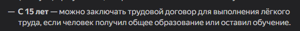 >>61746216 ты даун, там кучи ограничений. то разрешение рдителей, то надо чтобы ты бросил учебу. с 16 лет ты работать можешь только если ты бросил учёбу, еблан. и прочие кучи говна. когда мы просто шли после школы шли сдавать металл а потом пиво пили. Без разрешений родителей и прочих справок и этот делали хоть в 12 лет.