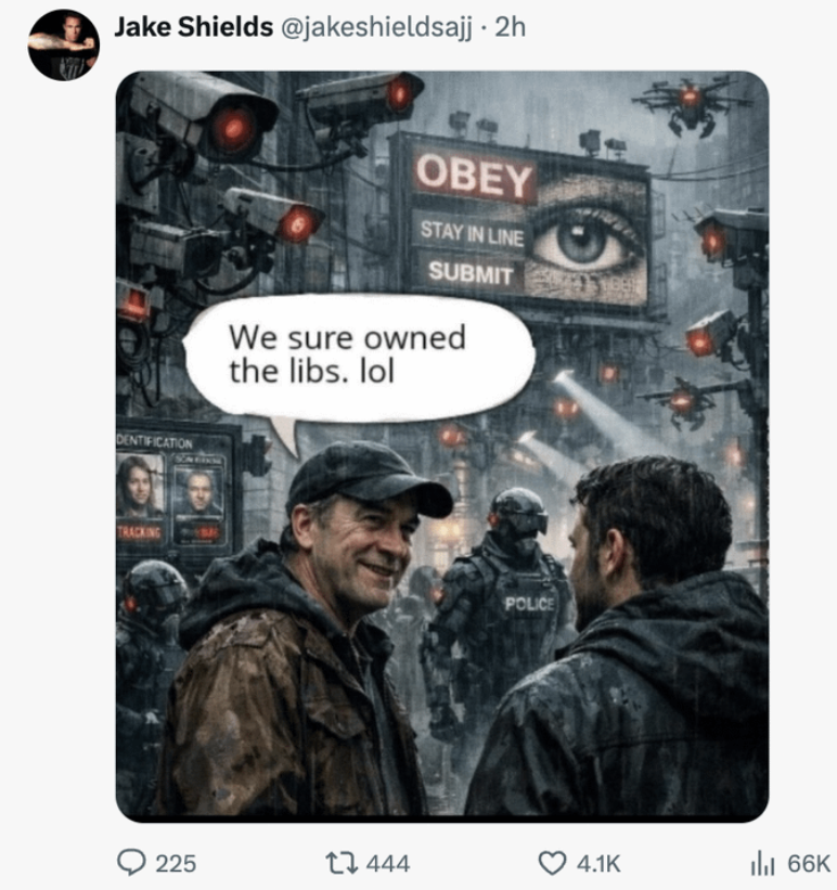 https://x.com/i/status/2010415045612847104 Если так получается запугивать копов, то с айс должно тоже может получиться. Подставить к ним по несколько человек с реальным оружием, а не с нигерскими глоками и они не смогут чувствовать себя безнаказанно