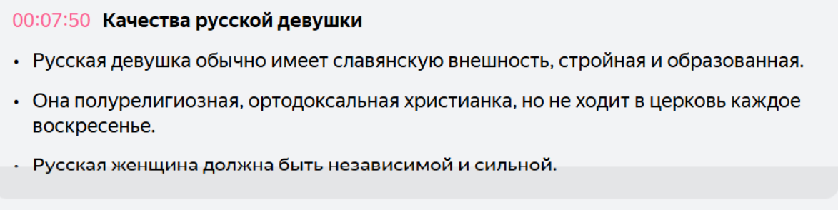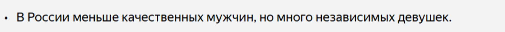 Рофл еще в том, что натаха там мычит что русские дамы - современные и независимые, поэтому их надо регулярно водить в дорогие рестораны и давать бабло на ништяки по щелчку, иначе она перескочит на другой хуй, тк независимая. Это они как плюс преподносят. Вдумайтесь блджад