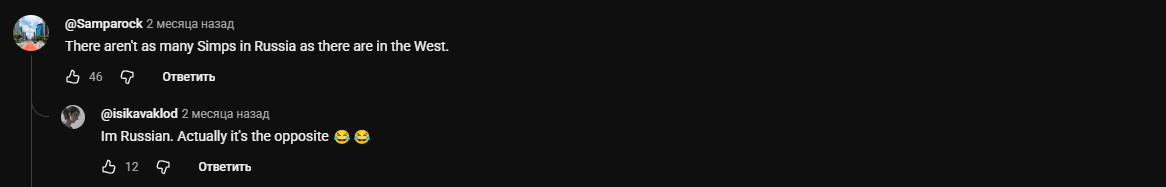 Понимаем лицемерие дырявых правильно, господа. Хотя я даже боюсь нырять в комменты на ютубе. Меня хватит кондратий если окажется, что кто-то из тамошних искренне поверил, что бабенция и правда считает, что все блять до единого мужики на сво.