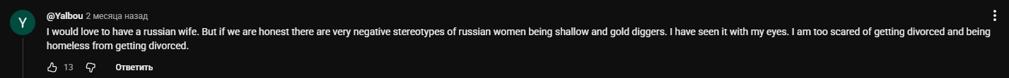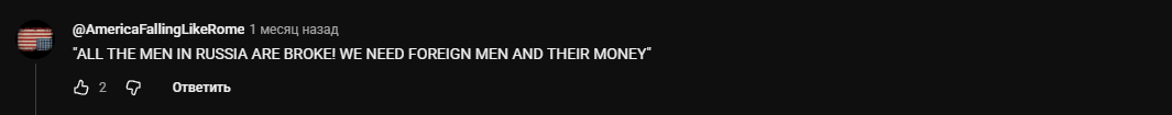 Весь смех в том что им нужен не просто иностранец, а успешный блять. Вопрос какого хуя успешному иностранцу ехать в Россию к охуевшей натрахе в их головы вообще не помещается. Да даже Джону живущему в трейлер парке это нахуй не надо ехать сюда содержать натрахена. Их уровень это быть выебаными и брошенными каким-нибудь дилдоджоном. Не более