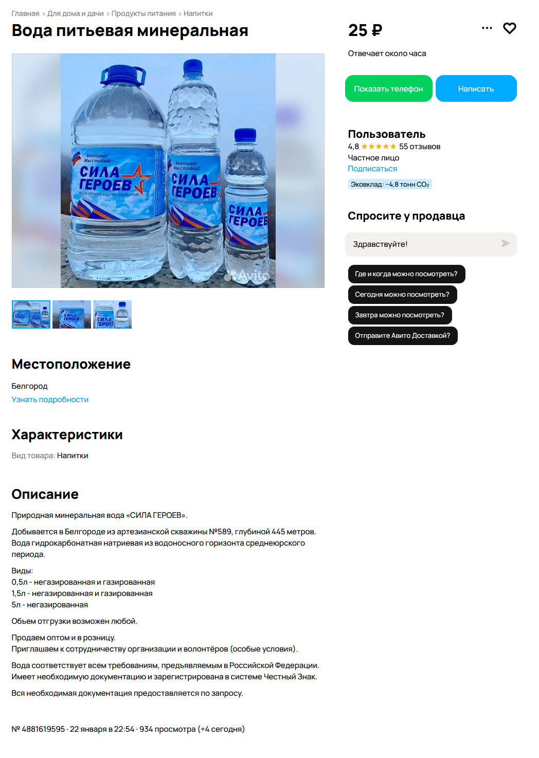>>61754422 (OP) >Простые люди делают бутилированную воду из чистейших скважин по сходной цене, не ленятся искать документацию и работать с Честным Знаком. По закону, без левых схем. Возможности есть везде, руку только протяни. Вот ты смеешься, а в спортзале куда я хожу, 0.5 бутылка воды с надписью Байкал стоит 220 рублей. А теперь посчитай за сколько секунд герой ролика заработает твою зарплату за день. Но вообще то не факт что это настоящая вода с документацией и честным знаком, а не подделка из гаража. И, пожалуй, если это подделка одной воды под другую воду, то я готов снять шляпу перед изобретательностью предпринимателя.