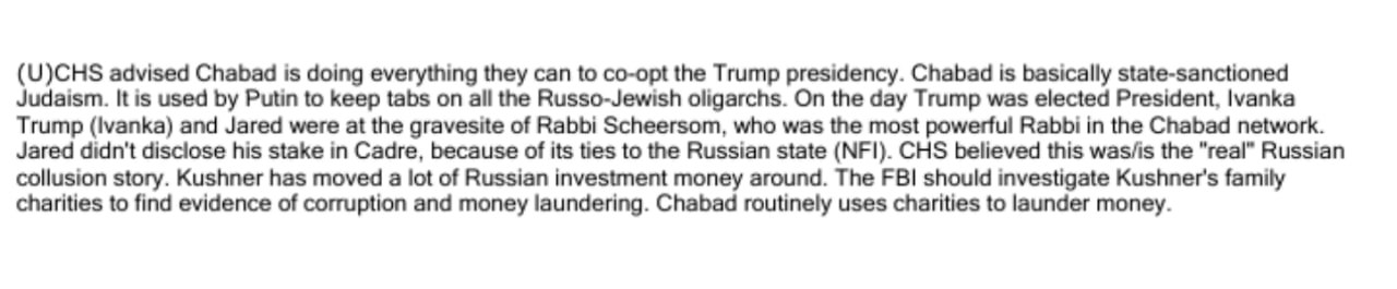 Выдержка из того же отчета CHS (EFTA00090315): CHS сообщила, что Хабад [глобальное еврейское движение хасидов, которое управляет тысячами центров по всему миру] делает все возможное, чтобы привлечь Трампа на пост президента.