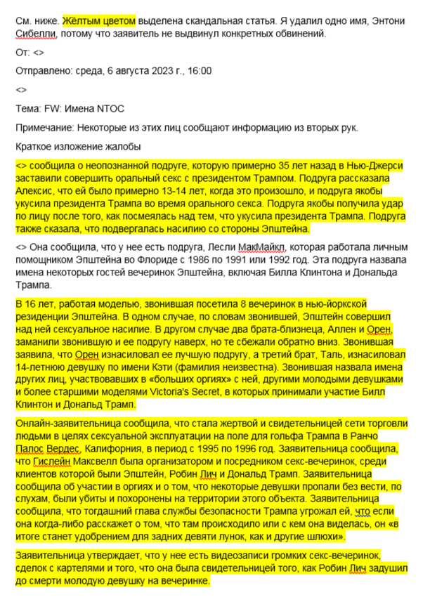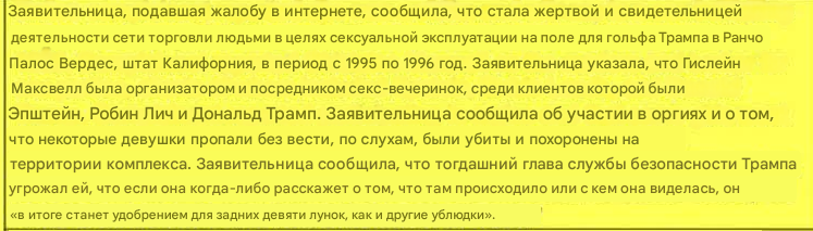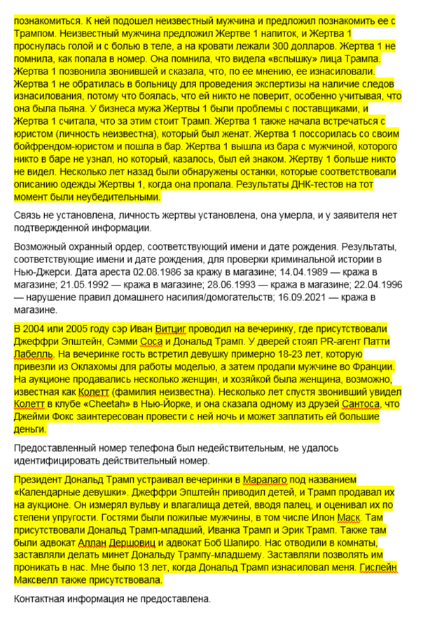 Ну тоесть пруф выглядит как "Согласно этому документу Трамп страшно ебал, насиловал и продавал детей, также там была вся семья Трампа, а еще он пидор, хуесос и Сатана"? А настоящие то пруфы будут? Это что вообще, показания свидетелей?