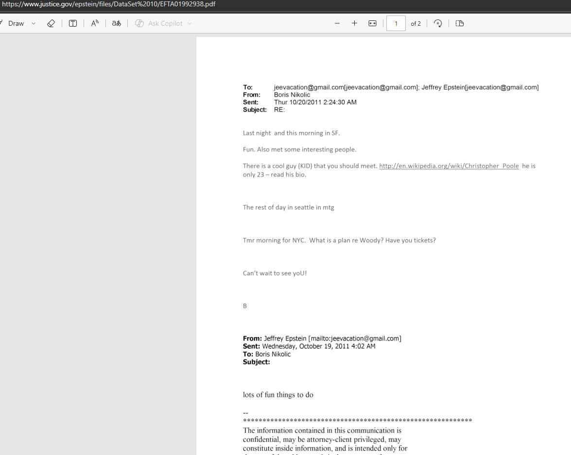 Один из телеграммеров сообщает, что он увидел новые файлы, где Министерство юстиции закинуло фотографии с обнаженными девушками. Также появились емейлы, где говорится, что Илон Маск писал Эпштейну что желает посетить его остров
