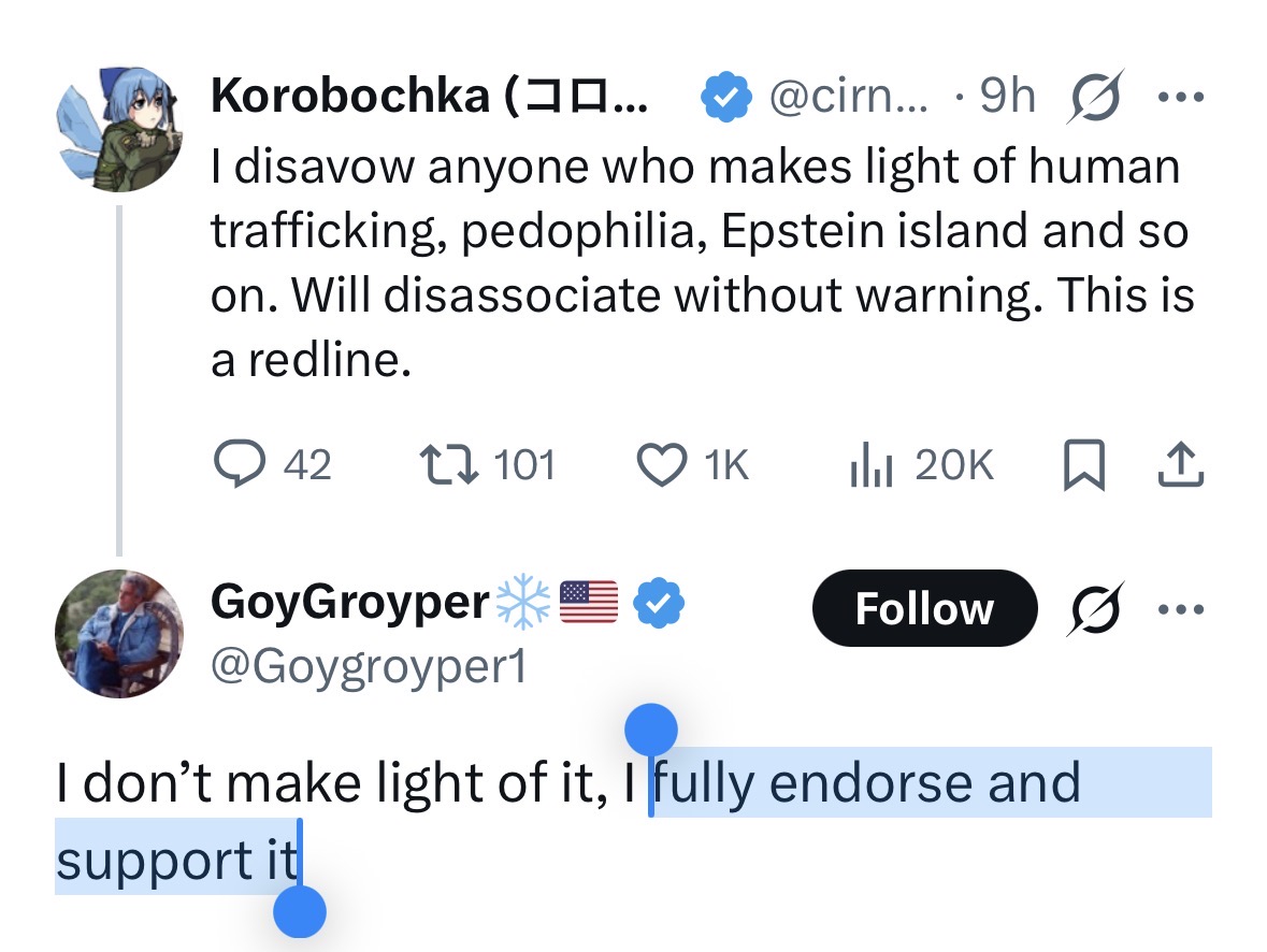 И теперь из того, что половозрелые девочки на острове Эпштейна делали то, что в них заложено природой - то есть получали ресурсы в обмен на секс, делают ебучую трагедию.