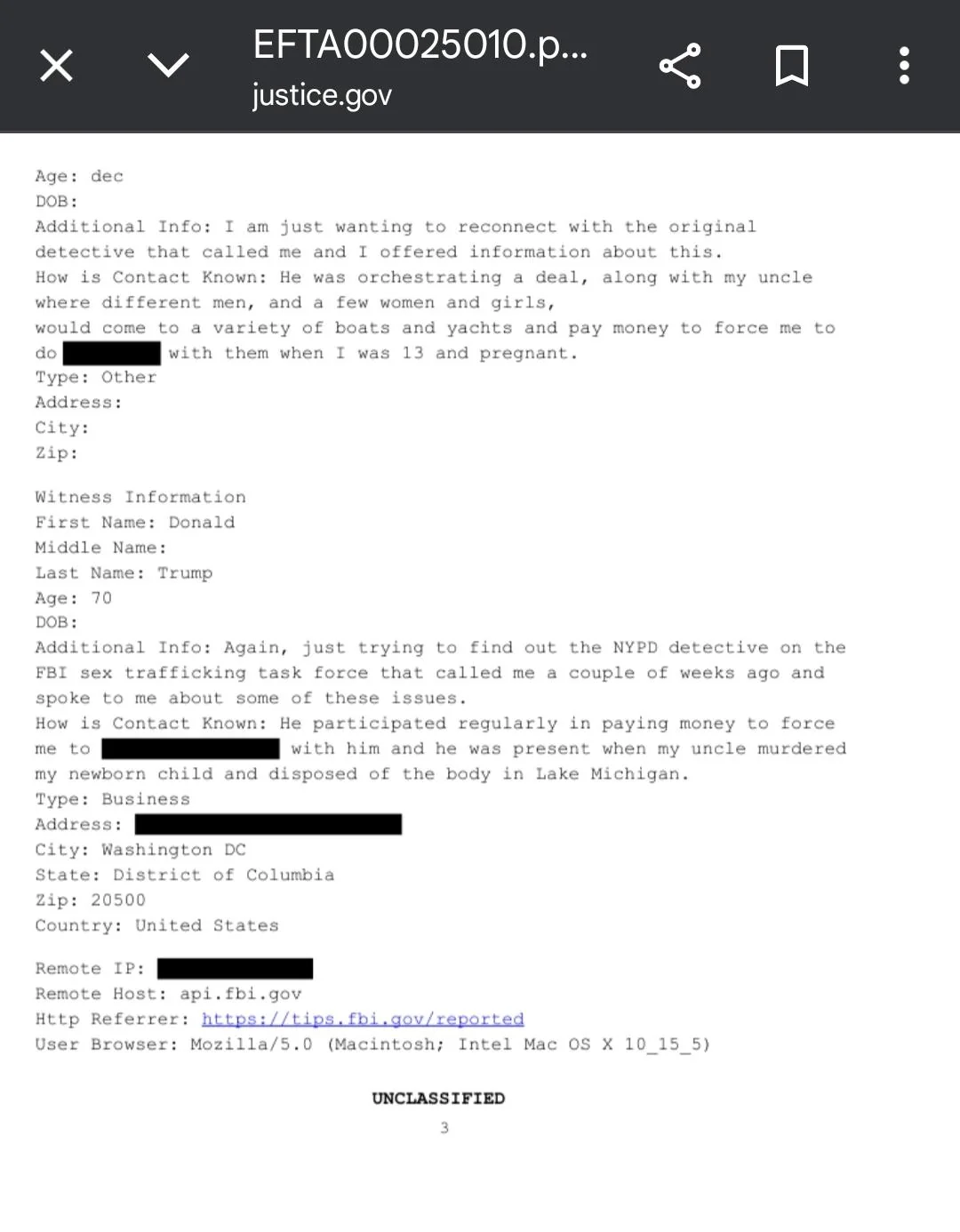 ГДЕ ТРЕД? Департамент юстиции США выложил pdf файлы, где 13-летние девочки сообщали следствию, что Дональд Трамп их изнасиловал вместе с Эпштейном. Была попытка их удаления на 1 час, но файлы все возвращены
