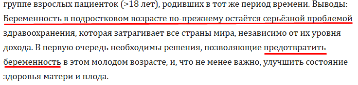 >>61767365 >повышение рисков до 18 лет, но тебе на правду поебать Ты просто промытая пропагандой феминизма дура, которая не в состоянии понять, что это исследование просто заказной фем-мусор, который ничего с реальностью не имеет, я всё ещё не верю, что ты на полном серьёзе ссылаешься на эту помойку. Они открытым текстом пишут их цели и задачи, поощряют аборты, пишут о необходимости снижения деторождения. Прекращай читать такие топорно сделанные пропагандистские статьи, лучше начни изучать биологию, особенно раздел полового созревания, много нового для себя откроешь.