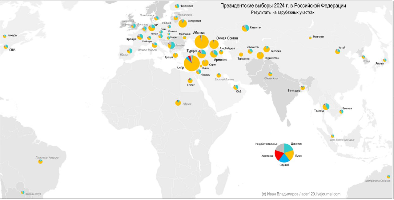 На этой карте показано, сколько голосов было подано на этих выборах. Мало кто голосовал в Африке, Аз