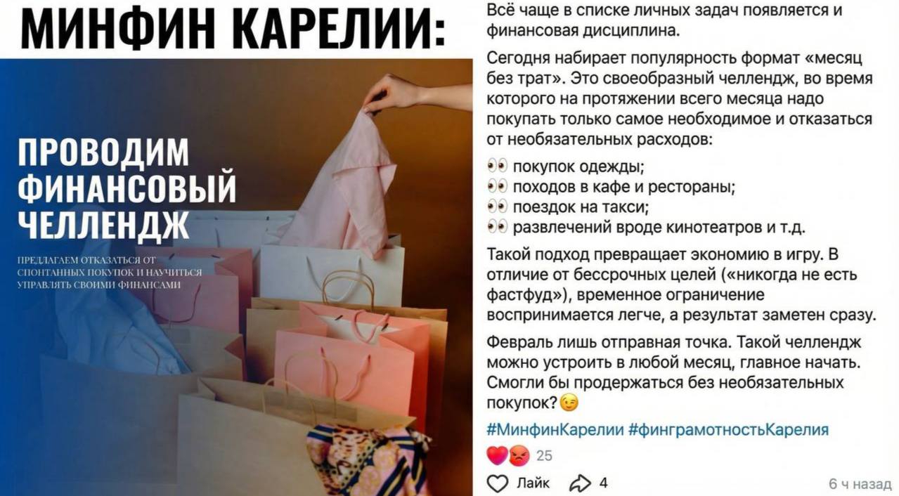 Минфин Карелии предложил жителям региона на месяц отказаться от развлечений, кафе и покупок ради эко