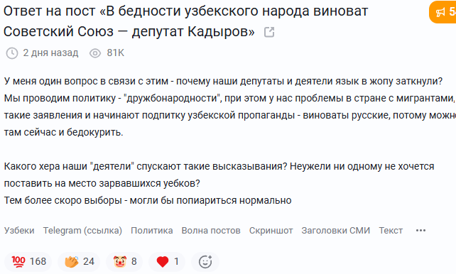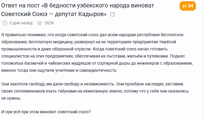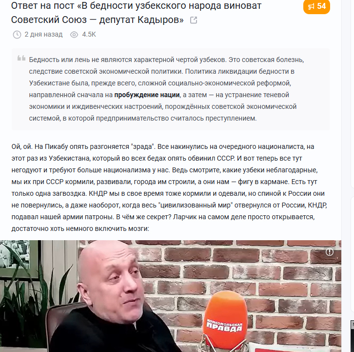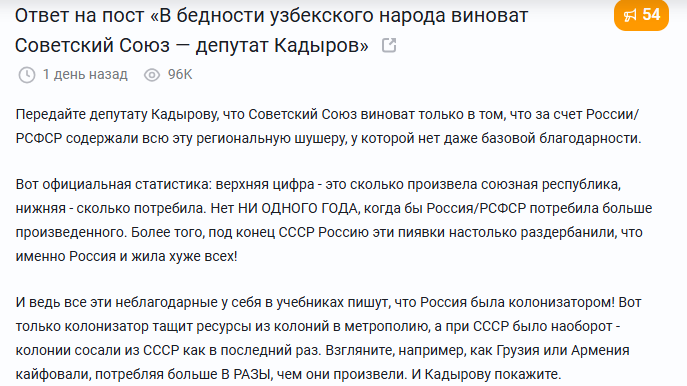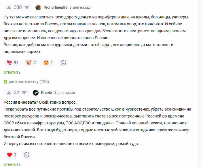 пикабушные шовинисты не унимаются. Они одновременно восторгаются СССР, говорят, что в СССР русских лишали хорошего уровня жизни в пользу Центральной Азии и называют уничижительными этнонимами бывших сограждан