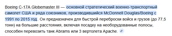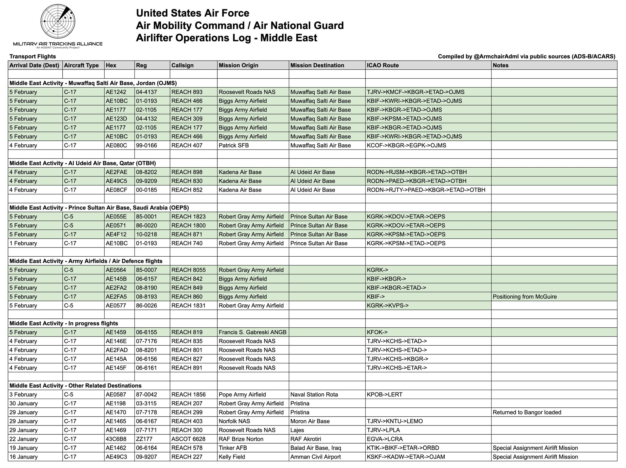 >К настоящему времени совершено более 125 полетов тяжелого транспортного самолета C-17A в регион Ближнего Востока, что свидетельствует о передаче широкого спектра вспомогательной и оборонительной техники.