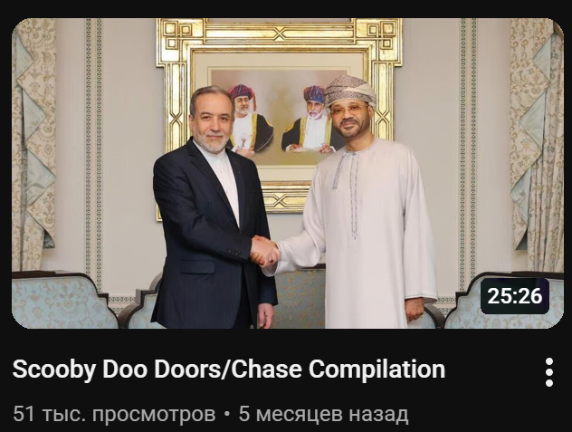 >Министр иностранных дел Ирана Аббас Арагчи: «В целом, это было хорошее начало переговоров. Решения о том, как будут продолжаться переговоры, будут приниматься в соответствующих столицах. Было достигнуто соглашение о продолжении переговоров. Я не хочу делать поспешных выводов, но если ход переговоров будет продолжаться в таком же духе, то можно будет достичь согласованных рамок. После восьми бурных месяцев диалог начался, и главная проблема — это отсутствие доверия». Ядерная держава в интернетах пугает сгенерированными роликами и даже ядерного удара, а на переговорах прячется в отдельной комнате и общается, через посредника. У Америки карт-бланш от человечества.