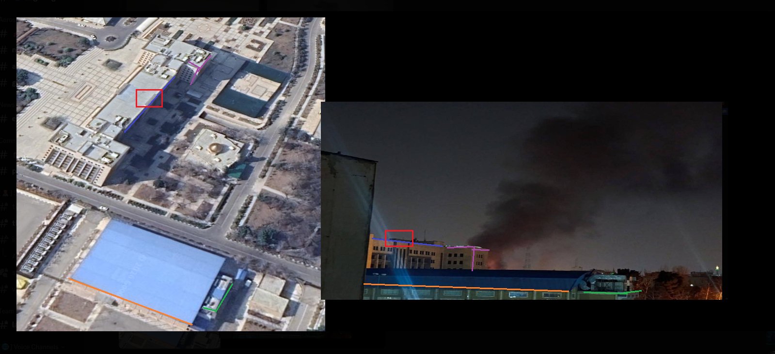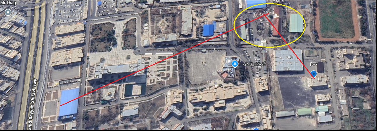 >Пожар в Тегеране C: 35.734226, 51.458796 >На основании этих двух геолокаций мы можем предположить, что именно в этом районе сегодня вечером, скорее всего, произошёл пожар. По всей видимости, это склад/свалка на территории военного комплекса.