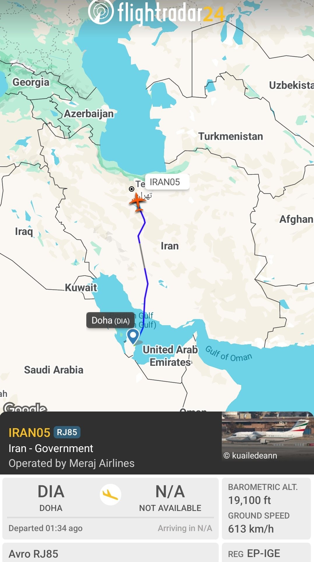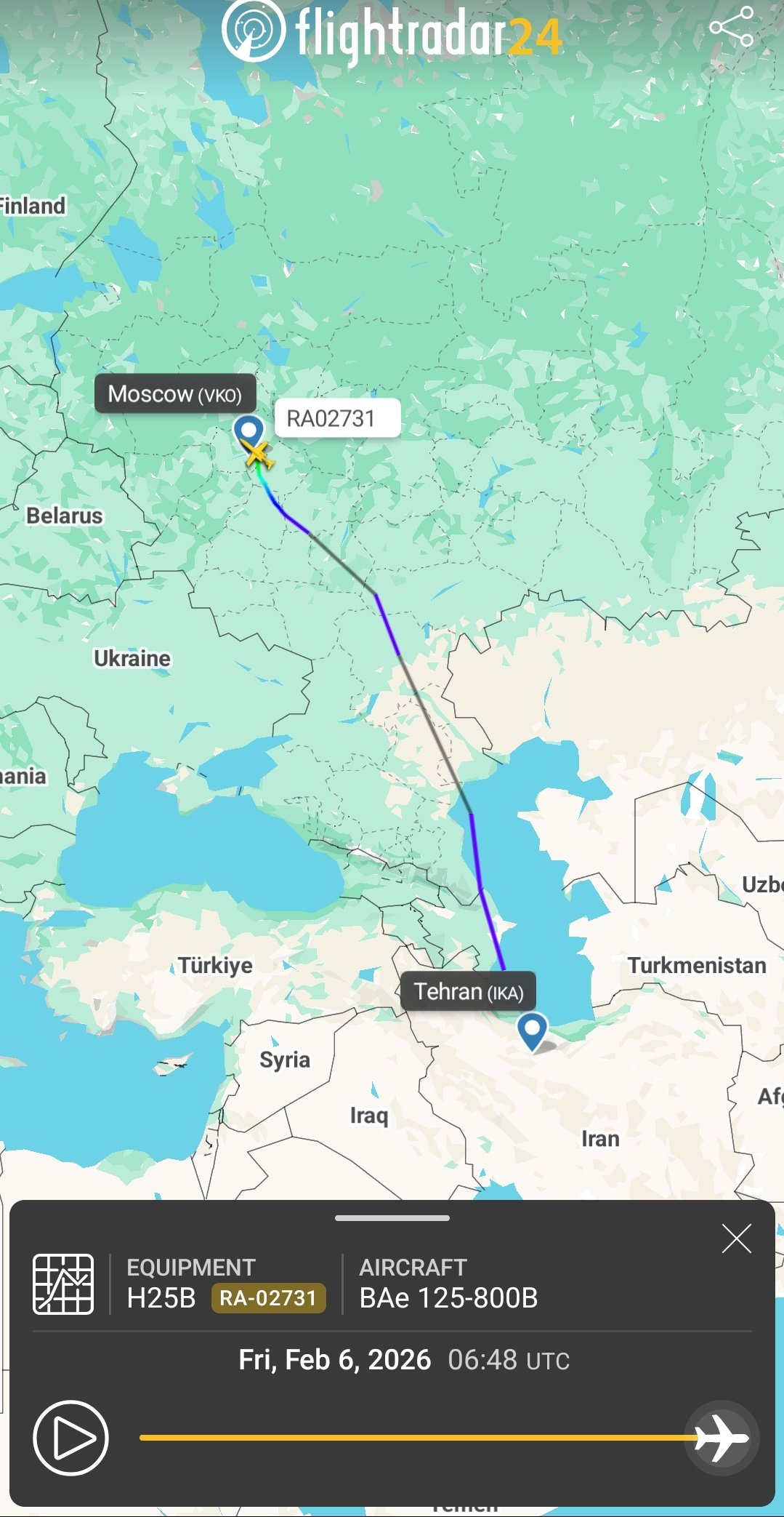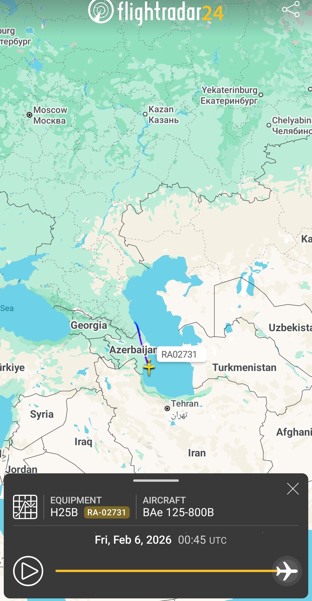 >Самолет BAe 125-800B (регистрационный номер RA-02731) сегодня утром вылетел из Махачкалы (после 7 дней стоянки) в Тегеран, а вечером вернулся в Москву.