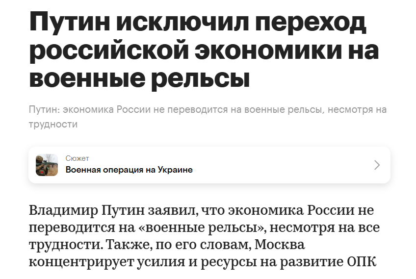 ТАСС Подавляющее большинство граждан России - 87% - поддерживают перевод экономики на военные рельс