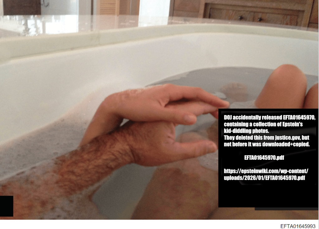 >>61794101 Вон конкретно этого фото ссылочку на сайте департамента юстиции. Вообще, хорошим тоном будет такие фотки подписывать кодовым названием файла, чтобы каждый мог зайти и убедиться. А иначе выходит, что это жидо-лахта или слабоумные дебилы постят заведомые фейки, дискредитируя историю с Эпштейном. Типичная тактика загрязнения воды.