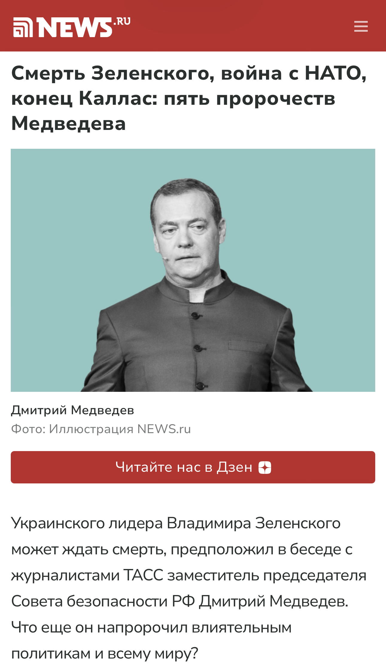 Смерть Зеленского, война с НАТО, конец Каллас: пять пророчеств Медведева
