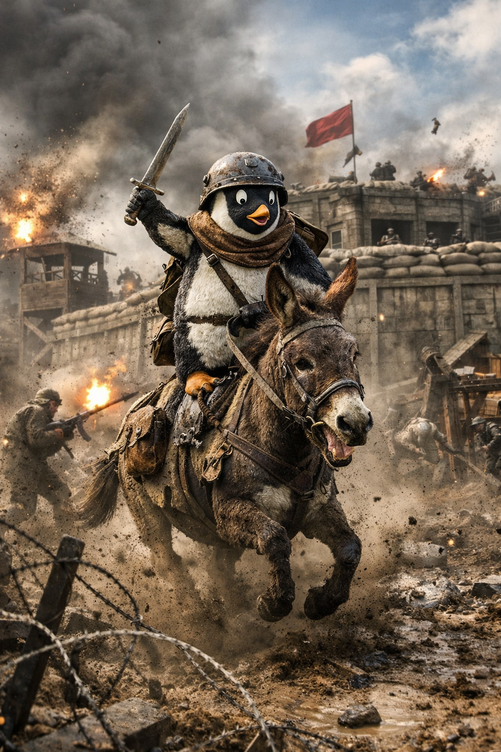 Потом, когда бандеровские операторы научатся определять фальшивые цели, можно будет реальным солдатам-пингвинам имитировать движения робото-ног. Бандеравцы будут думать, что это фальшивый пингвин и будут подписать к позициям.