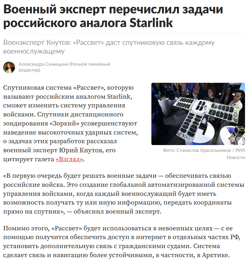>>61799462 "Пока все обсуждают палки в колеса нашим дронам на Starlink от уже не нашего Илона Маска, хочется вспомнить и как там поживает заявленный российский аналог "Старлинка"?