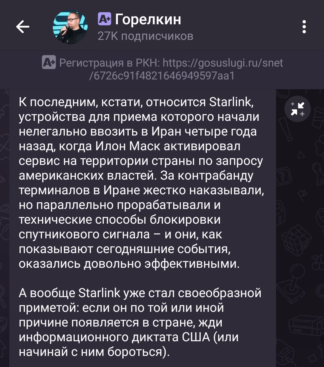 А претензия логичная,учитывая что нашего ответа Старлинк Армия не получила ДО СИХ ПОР ЭТО ЖЕ НЕ МЕССЕНДЖЕР МАКС ИЛИ ВК ВИДЕО РЕКЛАМУ КОТОРЫХ ТЫ ВИДИШЬ ПОЧТИ ВЕЗДЕ,ЭТО ЖЕ ВАЖНЕЕ Зато интервидение с ШАМАНОМ было