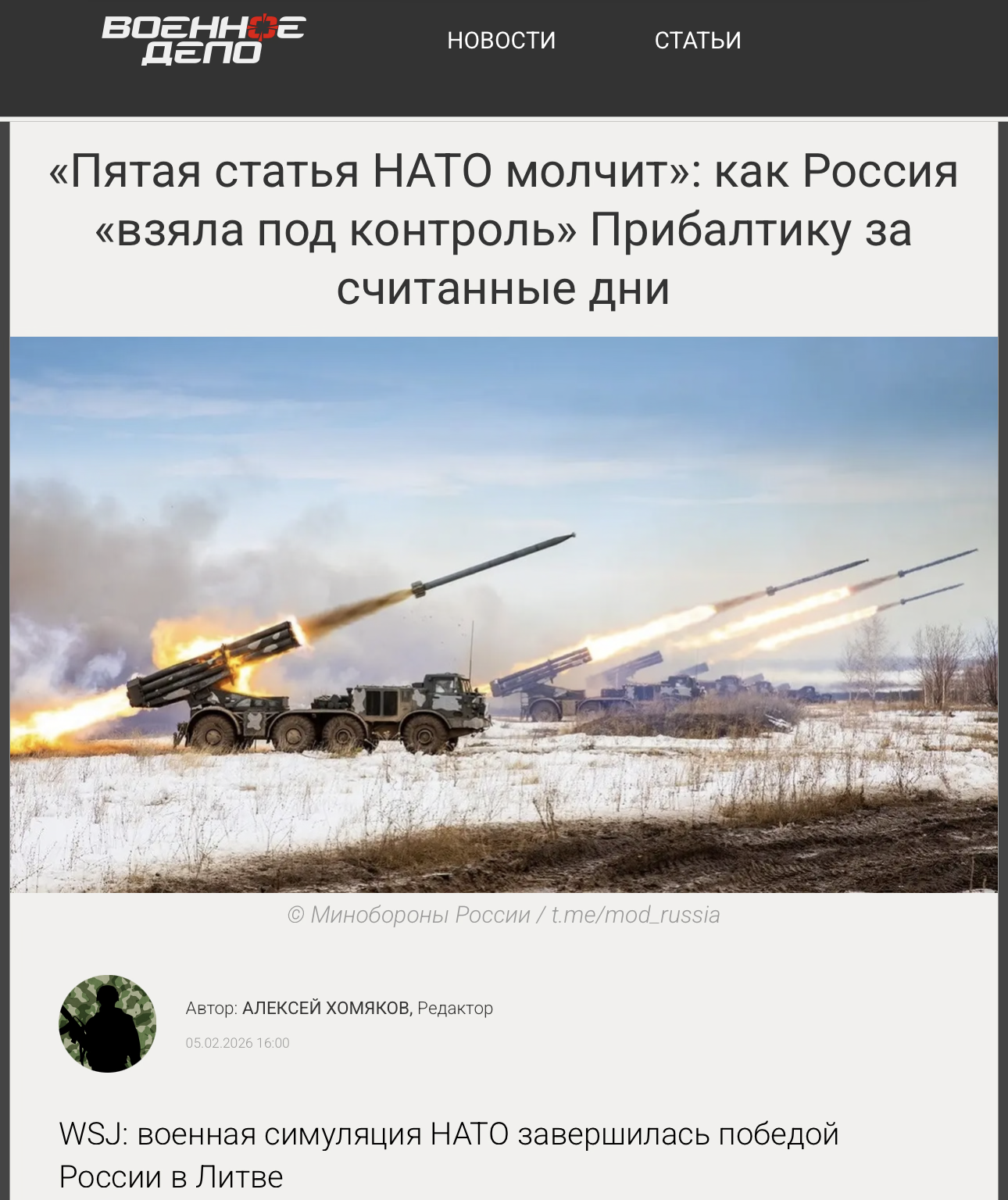 Экс-глава военного комитета Североатлантического Альянса Роб Бауэр в интервью Die Welt заявил, что пятая статья договора Альянса о коллективной обороне не означает автоматический военный ответ в случае нападения России. НАТО может не ответить на вторжение РФ, например, в эстонскую деревню. Но консультации будут обязательно.