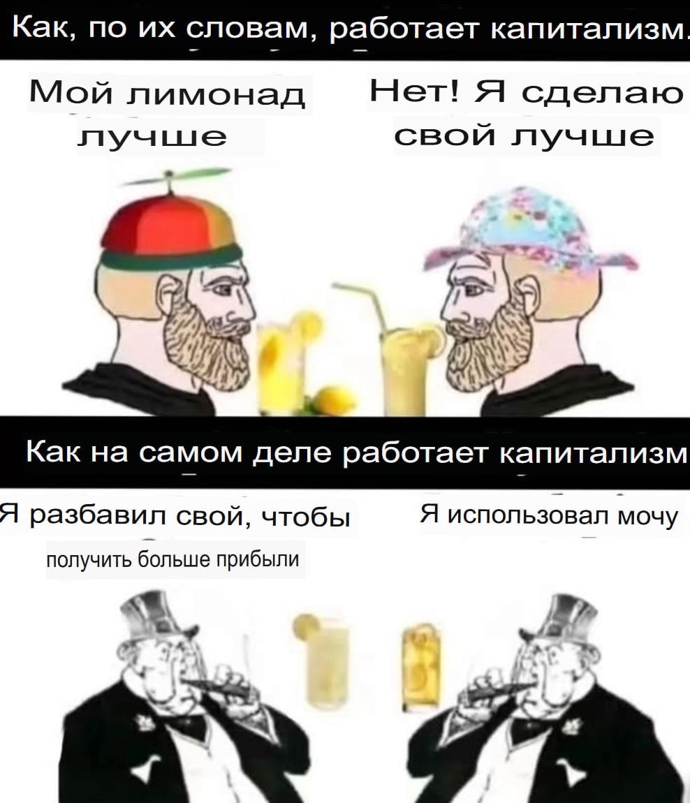 >>61872163 Так у тебя буквально на пикче свободный рыночек ( люди продают свои овощи ) ссал тебе за шиворот порвачок. Дежурное напоминание, что в СССР давали квартиру за то что ты просто работяга, а сейчас наценка на хату в 4 раза и не смотря на то что застройщики на грани разорения, цены никто не снижает, а просят у государства дотаций и субсидий! Но не в коем случае не снижать цену, пускай народ ещё в ипотеку на 30 лет залезит и заплатит в 5 раз больше стоимости квартиры, цена которой изначально в 4 раза завышена и того 4*5=20 ПЕРЕПЛАТА в 20 раз!!!!?