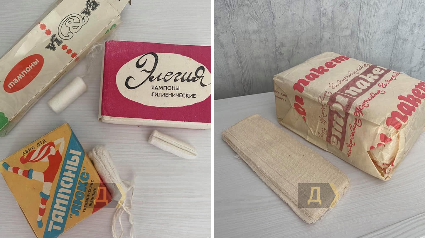 Дело в том, что предметы женской гигиены, доступные капиталистическим женщинам с начала 20 века в святом сссре были буржуазным излишеством. Поэтому вам придется использовать резиновые труселя (на пикче справа) в комплекте с куском ваты или ветоши (оставшейся после протирки станка)