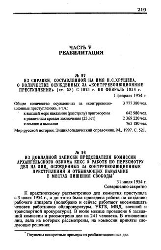 >>61911430 Мне не веришь спроси мвд По сведениям, предоставленным Генеральной прокуратурой РФ и МВД РФ, за весь период реабилитации на момент 1 января 2002 г. было реабилитировано свыше 4 миллионов граждан